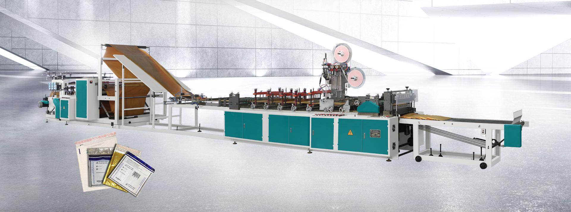 本機是生產(chǎn)淋膜牛皮紙氣泡信封和共擠膜氣泡信封制作而設計的一出一和一出二定制專用機型。已經(jīng)在氣泡膜機上復合好的共擠膜氣泡膜卷、鍍鋁膜氣泡膜卷、珠光膜氣泡膜卷也同樣適用于本機型。